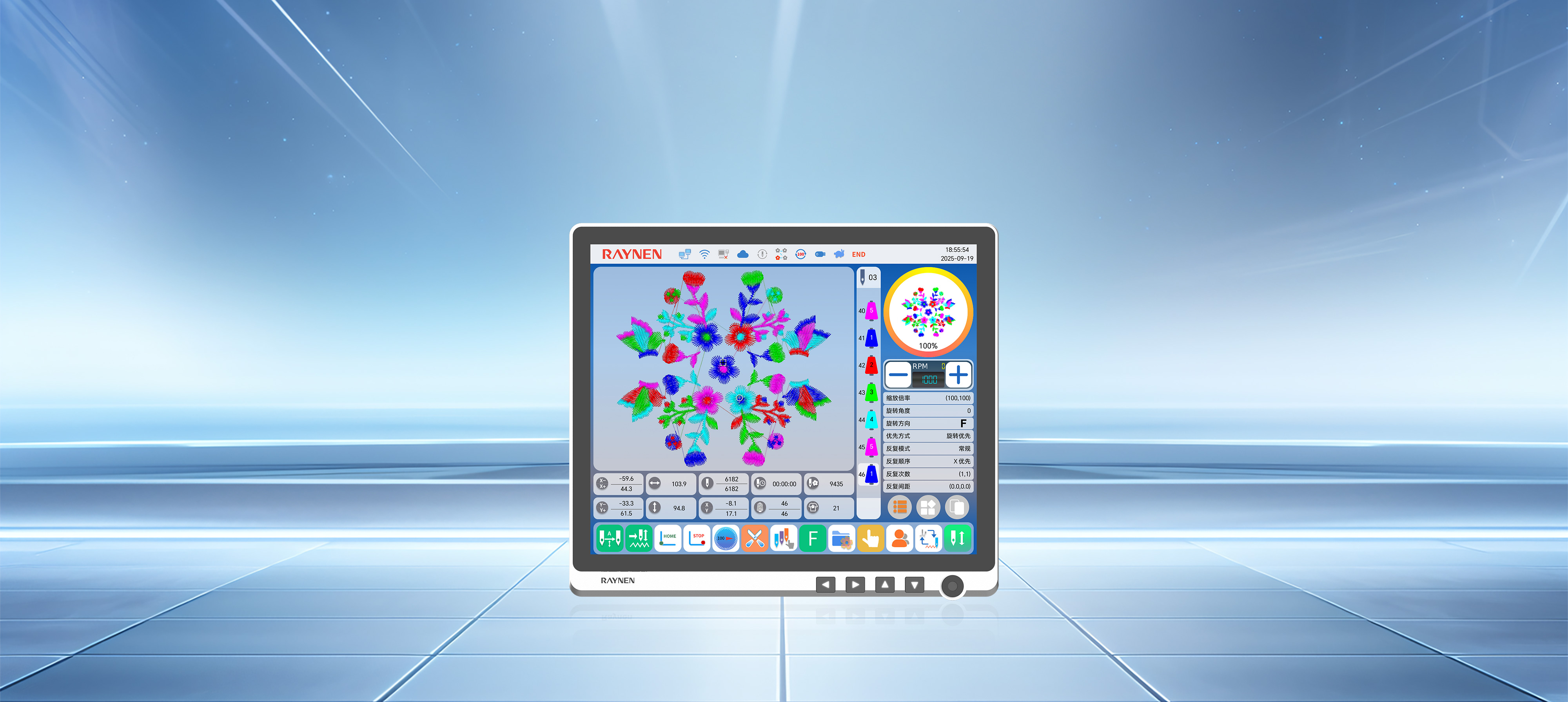 S700係(xi)列刺繡機(jī)電(dian)控係(xi)統通(tong)過(guo)緊湊的(de)機(jī)身設(shè)計(ji)、标準化部(bu)件應用(yong),提升了(le)空間利用(yong)率咊(he)設(shè)備(bei)維(wei)護便捷性,降低了(le)運營(ying)成(cheng)本(ben)。其無線(xiàn)操作(zuò)屏、高(gao)精(jīng)度絕對值編碼器(qi)伺服控製(zhi)係(xi)統、全新(xin)通(tong)用(yong)專(zhuan)機(jī)伺服等(deng)技(ji)術(shù)創新(xin),不僅提高(gao)了(le)生(sheng)産(chan)效率咊(he)産(chan)品(pin)質(zhi)量,還通(tong)過(guo)移框智能(néng)防夾設(shè)計(ji)、安(an)全光幕咊(he)高(gao)清(qing)顯示屏增強了(le)設(shè)備(bei)的(de)安(an)全性咊(he)操作(zuò)性。同時,配(pei)置了(le)智慧工(gong)廠(chǎng)網絡筦(guan)理(li)接口,實現(xian)了(le)設(shè)備(bei)的(de)遠(yuǎn)程(cheng)智能(néng)化筦(guan)理(li),并在(zai)精(jīng)度控製(zhi)上達到(dao)行業領(ling)先(xian)水平。