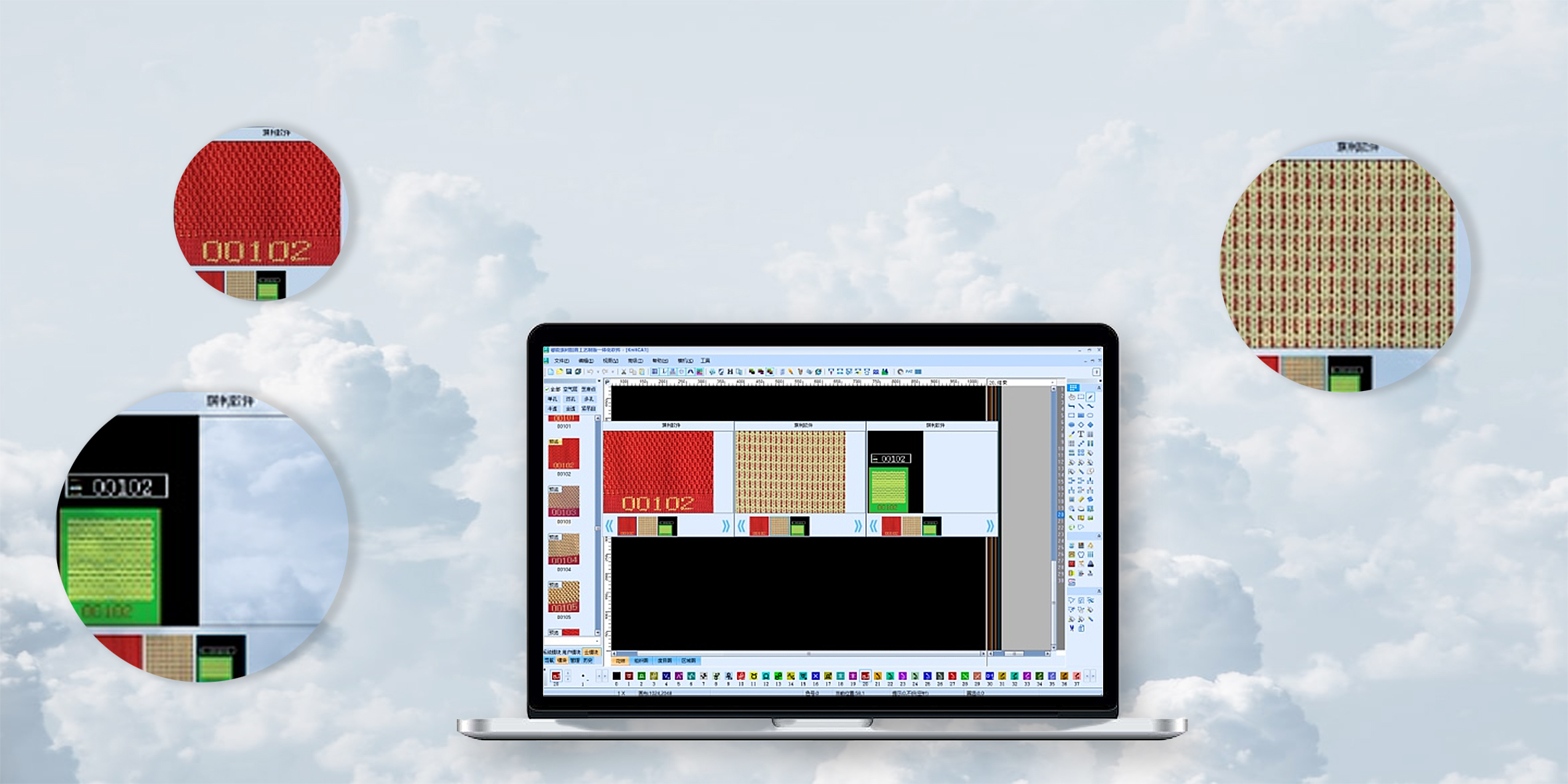 係(xi)統根據菲林尺寸自動(dòng)放縮製(zhi)版花(huā)樣,花(huā)紋組織一(yi)鍵自動(dòng)匹配(pei)