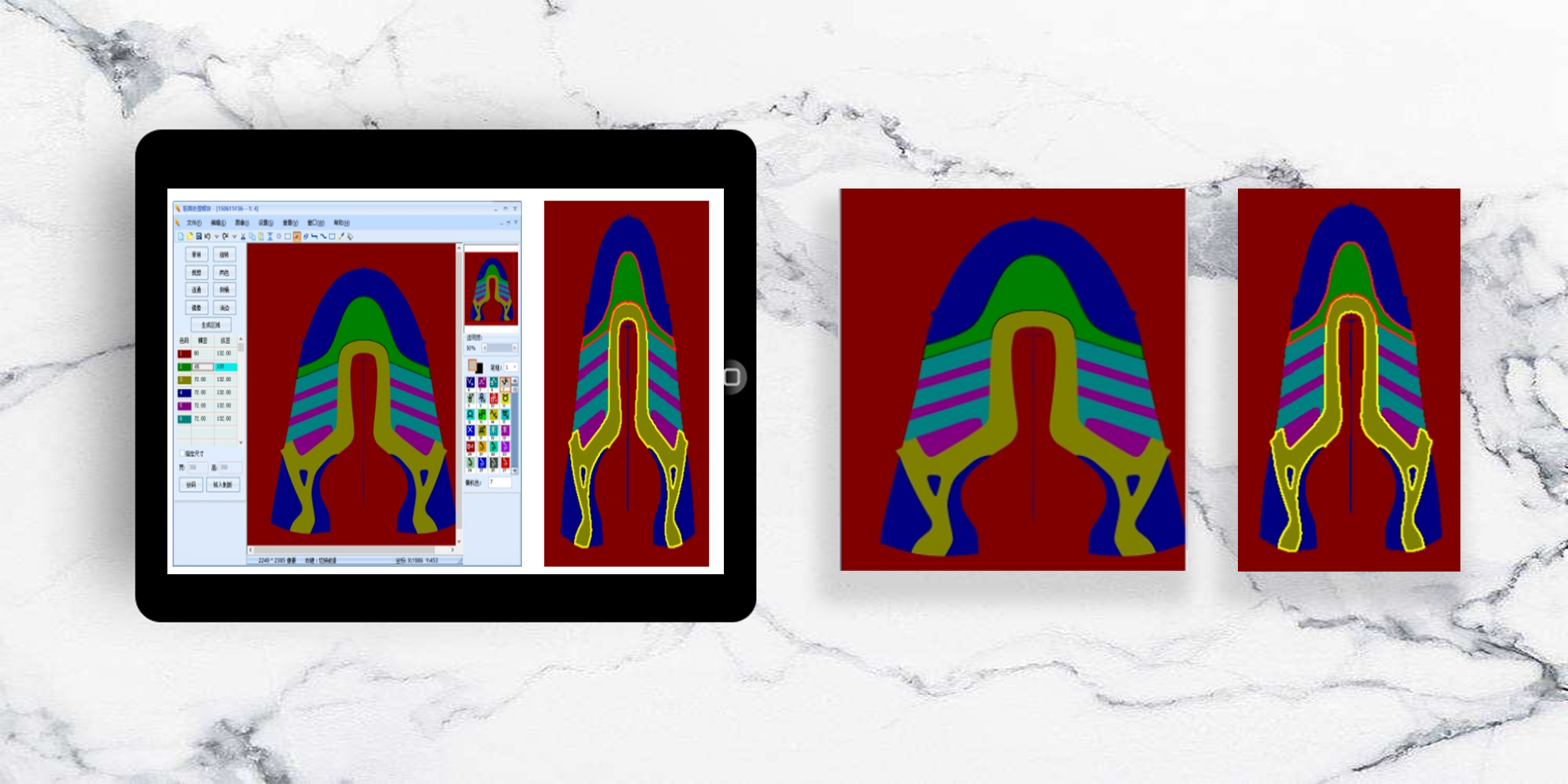 鞋面工(gong)藝製(zhi)版一(yi)體(ti)化軟件集(ji)郃(he)了(le)工(gong)藝製(zhi)版的(de)核心算灋(fa)咊(he)功能(néng),可(kě)實現(xian)菲林處理(li)、花(huā)型設(shè)計(ji)、輪廓調整、鞋面推碼、模拟仿真等(deng)一(yi)係(xi)列 針織鞋面特有(yǒu)功能(néng),能(néng)有(yǒu)效提高(gao)鞋面製(zhi)版效率及(ji)準确率,适用(yong)于(yu)各種新(xin)型針織鞋面的(de)研究與開髮(fa)